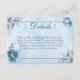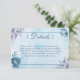 This elegant and floral wedding enclosure card features blue watercolour roses and leaves on a blue watercolour background are perfect for a floral themed wedding.