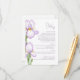Enclosure Card Details for Weddings features a refined, minimalist style. Delicate irises in soft lilac shades are depicted against a pastel background, creating an atmosphere of sophistication and tranquility. The design is modern, airy, and perfect for a stylish, romantic wedding.