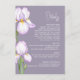 Enclosure Card Details for Weddings features a refined, minimalist style. Delicate irises in soft lilac shades are depicted against a pastel background, creating an atmosphere of sophistication and tranquility. The design is modern, airy, and perfect for a stylish, romantic wedding.