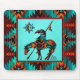 This is a Unique "One of a Kind" End Of The Trail Mouse Pad It Features a Native American End Of The Trail Indian and Horse on a Turquoise Background...Surrounded by a Southwest Turquoise, Orange & Black Border!