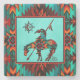 This is a Unique "One of a Kind" End Of The Trail Stone Coaster! It Features Native American End Of The Trail Indian and Horse Under the Sun on a Turquoise Background...Surrounded by a Southwest Border in Turquoise, Orange & Black!