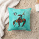 This is a Unique "One of a Kind" End Of The Trail Throw Pillow! It Features a Native American End Of The Trail Indian on a Horse and Decorative Moon in Turquoise, Orange and black...on a Turquoise and White Background!
