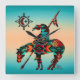 This is a Unique "One of a Kind" Indian End Of The Trail Wall Clock! It Features a Native American Indian on a Horse and Sun on a Turquoise and Orange Sunset Background!