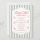 End Of Year Celebration Corporate Christmas Party Company Holiday Party Invitations feature simple whimsical red Christmas elements on a green and white striped background with the text "End Of Year Celebration" in elegant red calligraphy script typography. Stylish, trendy and chic for your corporate Holiday Party. Created by Evco Studio www.zazzle.com/store/evcostudio