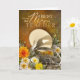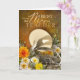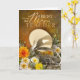 This end-of-year thank-you card celebrates a French Horn Music Teacher, featuring a polished golden French horn set against a rustic music-sheet background with warm golden-brown tones. Surrounding the instrument is a rich display of flowers—yellow, white, orange, and cream blooms with textured leaves—creating a beautifully elegant and heartfelt musical tribute.