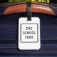 Identify your bags easily at the airport with this distinctive End School Zone luggage tag. The high-contrast black and white traffic sign design makes your suitcase stand out on the carousel, helping you spot your gear from a distance. Built to withstand the rigors of travel, this sturdy tag is perfect for teachers on summer vacation, students heading home for break, or frequent travelers who love quirky transit-themed accessories. It is a practical and stylish way to keep your contact information secure while you are on the move.