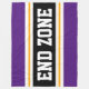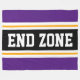 This sporty, athletic design features bold END ZONE text inside a highlighted wide black stripe with double white and yellow racing stripes against royal purple outer stripes. The text can be personalised.