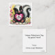 Stinkin' cute skunk sends hearts and love for new classroom friendships this Valentine's day. This cute, black and white skunk sits holding a glittery, pink heart and inscribed with "BE MINE" in black. White and pink roses and rose petals lay at her feet. A yellow gold and deep pink watercolor swash with drips and splatters in the backdrop.