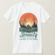 Embrace the harmony of nature and sustainable energy with this serene t-shirt design, featuring a tranquil campsite on a gentle hillside. A cosy tent rests on the grassy hill, while majestic wind turbines turn gracefully in the background, symbolising a peaceful coexistence with renewable energy. With a soft pastel colour palette and clean lines, this design is calming and eco-friendly, capturing the warm glow of a setting or rising sun. The minimalist phrase, 'Serenity in Nature, Power in the Wind,' completes the look, perfect for nature lovers and environmentally conscious adventurers alike.