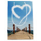 A wooden bridge - an endless way to the ocean with a heart in the sky, made of clouds.
