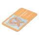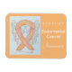Endometrial Cancer uses a peach ribbon to support awareness for its cause. The custom magnet features a peach awareness ribbon guardian angel art magnet with the message "Support Endometrial Cancer Awareness". The peach awareness angel ribbon art can be customised with personalised messages to make great cause merchandise magnets for fundraisers, awareness gifts, or other special cause events or occasions.