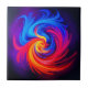 Energetic Abstract Swirl in Blue Red and Yellow Ceramic Tile