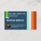 Card features an array of bold bright colours in a vertical column form. The dark cyan column on the left has all the card's details. Your prestigious name, job title and contact number is beside a stylish roller brush signage that reads "Painting Service". Near the base of the card are the business name and contact details. This is beside a faux gold logo of a simple negative space design using the letter-P and a home. The letter-P can stand for "Painter" if you wish.