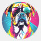 Energetic Boxer Dog With Sunglasses Pop Art Classic Round Sticker