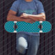Energising Teal and Turquoise Chequerboard Pattern Skateboard