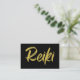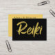 This is a unique and powerfully beautiful Reiki business card which is sure to impress. The bright gold glitter foil Reiki typography truly pops against the black background.