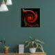 This fine art poster features a circular whirlpool pattern in brilliant colours of red, orange, green, yellow, brown and black. The abstract design is an impressionistic view of the swirling energy of creation.