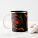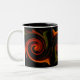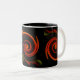 This fine art mug features a circular whirlpool pattern in brilliant colours of red, orange, green, yellow, brown and black. The abstract design is an impressionistic view of the swirling energy of creation.