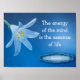 Tthe energy of the mind is the essence of life - Aristotle quote poster. Beautiful white lily flower on blue background.