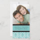 Engagement announcement Photo Card in elegant turquoise blue, black and white classic floral damask pattern, customisable with your names, the perfect way to announce your engagement to friends and family. Pattern available in a wide range of matching wedding products.