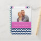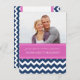 Engagement announcement Photo postcards in elegant dark navy blue, fuchsia hot pink and white retro chevron zigzags vintage pattern, customisable with your names, the perfect way to announce your engagement to friends and family. Available in a wide range of matching wedding products.