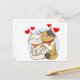 Send some love to friends and family with this cute cartoon cat love postcard. The card features a cute cat couple with cute red hearts highlighted with a soft blue sky background. The back of the postcard is blank for your message. Cat lover postcards are perfect for - * weddings, bridal shower, engagement announcements, etc. * personal notes * businesses * stationery gifts - wrap a pretty ribbon around a few cards * greetings - valentines day, love, hello, friendship, thinking of you, etc. Please scroll down to view more cat lover gifts and products you may enjoy.