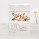 Congratulate the couple who has announced their engagement with this personalized greeting with lovely wedding rings and flowers.