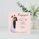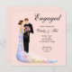 Celebrate the happy news of your engagement with your family and friends by sending out these beautiful engagement party invites. This modern design features an elegant couple dressed in evening wear and looking at each other lovingly. The pastel colours make for a stylish engagement invitation. This design is part of an engagement collection and available on envelopes, wine labels, table balloons, paper napkins, banners, favour tags, and favour boxes.