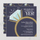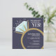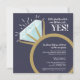 Invite your friends and family to a engagement party or engagement dinner celebration with these dark blue, gold, aqua and white, graphic diamond engagement ring invitations. Personalised with your own celebration words, date and venue. Other matching items available. Original graphic art and design by www.mylittleeden.com on zazzle.