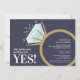 Invite your friends and family to a engagement party or engagement dinner celebration with these dark blue, gold, aqua and white, graphic diamond engagement ring invitations. Personalised with your own celebration words, date, venue and a photo of your couple on the back. Other matching items available. Original graphic art and design by www.mylittleeden.com on zazzle.