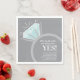 Blue grey modern fun fact and diamond engagement ring napkins. She said yes engagement ring party napkins personalise with your own name and couples fun facts. Other matching items also available. © Original graphic ring design by www.sarahtrett.com for www.mylittleeden.com and www.mylittleedenweddings.com on zazzle.