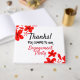 Illustrated red flowers with text reading:
