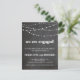 We are engaged party invitation postcard with string lights on a cool rustic chalkboard background. More options on: http://www.zazzle.co.uk/designbyredline
