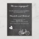 Modern Engagement party invitation on a cute chalkboard background. It features a romantic bike with heart balloon with your custom initials. Find more options in our shop!
