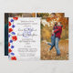 Engagement Party Rustic Wood & Red Poppy 4-Photo Invitation