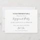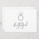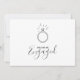 Announce your engagement with this charming card featuring a playful line drawing style of an elegant diamond ring against a minimal white background. Beautiful script fonts highlight the "We're Engaged" message and your names, while space below lets you personalise party details, date, and celebration info to suit your special day. The combination of fun illustration and sophisticated typography offers a fresh, memorable way to share your happy news.