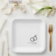 A fun and unique script-lettered paper-plates tailored specifically to your future engagement dinner or party. It features a set of engagement rings. Underneath this and above it are the names of the bride and groom and the engagement or wedding date.