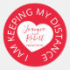 Social distance engagement or wedding event red colour-coded sticker. Help your guests feel safe and let other guests keep their distance from your more vulnerable and worried guests. Code red health warning sticker reads I AM KEEPING MY DISTANCE plus you can personalise with your own couples name event or wedding date. Matching posters and instructions are also available. Designed by www.mylittleedenweddings.com