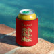 This contemporary design inspired by the Great Seal of King Richard the Lionheart features three identical gold lions aligned on top of each other on a red background.