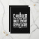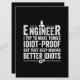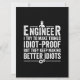 Funny Sarcastic pun: Engineer - I Try To Make Things Idiot-Proof But They Keep Making Better Idiots. Are you an Engineer? Maybe you're an Engineering Student with a sarcastic sense of humour.