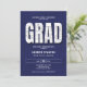 A background of engineering drafting designs over navy blue, with the same engineer drafting paper effect over the bold letters spelling the word GRAD decorate this modern, elegant and classy graduation party or celebration invitation for a newly minted engineer. The generic design fits many types of engineering degrees, from mechanical engineer, to electrical engineer, computer engineer, chemical engineer and more. Customise every line of text, to include the graduation ceremony and afterwards party, or only the party, an open-house celebration... etc.