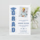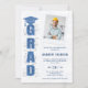 A background of engineering drafting designs, with the same engineer drafting paper effect over the bold letters spelling the word GRAD in blue, decorate this modern, elegant and classy graduation party or celebration photo invitation for a newly minted engineer. The generic design fits many types of engineering degrees, from mechanical engineer, to electrical engineer, computer engineer, chemical engineer and more. Customise every line of text, to include the graduation ceremony and afterwards party, or only the party, an open-house celebration... etc. Template for one photo.