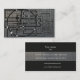 Engineering style business card. The style reflects schematically connected geometrical lines. Grey colour iron background used to reinforce the impression of microchip. Designed for science and technology style lovers, art people.