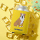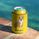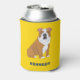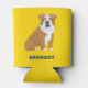 Create a personalised gift that's perfect for dog lovers and dog owners. This can sleeve or foam can wrap features a realistic style illustration of an English bulldog in light brown and white set against a bright yellow background and is ready to be personalised with a name in bold navy blue coloured lettering.