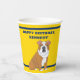 Throw a doggone good party with these personalised paper cups. They're perfect for birthday parties or other celebrations honouring dog lovers of all ages. They feature a realistic style illustration of an English bulldog in light brown and white set against a bright yellow background with navy blue accent stripes. Navy blue lettering spells out your custom message. The graphic and message appear on the front and back of the cup.