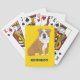 Create a personalised gift that's perfect for dog lovers and dog owners. This deck of playing cards features a realistic style illustration of an English bulldog in light brown and white set against a bright yellow background and is ready to be personalised with a name in bold navy blue coloured lettering.