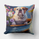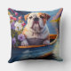 English Bulldog on a Paddle: A Scenic Adventure Cushion