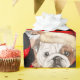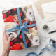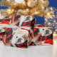 This English Bulldog is dressed for the holiday season in a red and black striped winter scarf and creates a fun pattern of dogs for wrapping the dog lover's Christmas gifts.