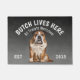 English Bulldog Personalised Dog lover welcome doormat. This welcome mat can be personalised with your dog’s name, the slogan can also be changed or you could use a picture of your own dog (make sure it's transparent). Text reads: Butch lives here…. All treats welcome