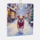 This festive Christmas artwork features a lovable English Bulldog strolling through a snowy holiday village. Perfect for adding seasonal warmth to walls, gifts for dog owners, or cozy winter décor. Nostalgic charm and beautiful detail bring this scene to life.